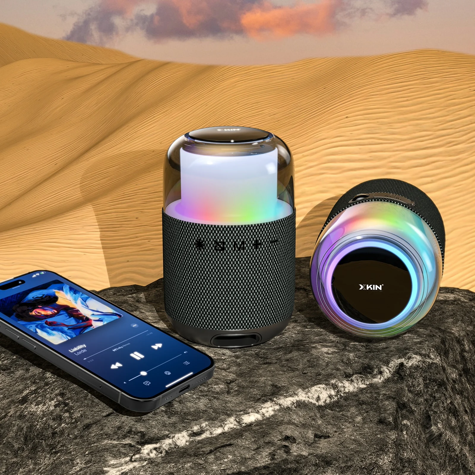 اسپیکر بلوتوثی Xkin XK-SP4 با توان 30 وات، بلوتوث 5.3، نورپردازی RGB و مقاومت در برابر آب IPX5، گزینه‌ای ایده‌آل برای مهمانی‌ها، سفر و استفاده روزمره است.