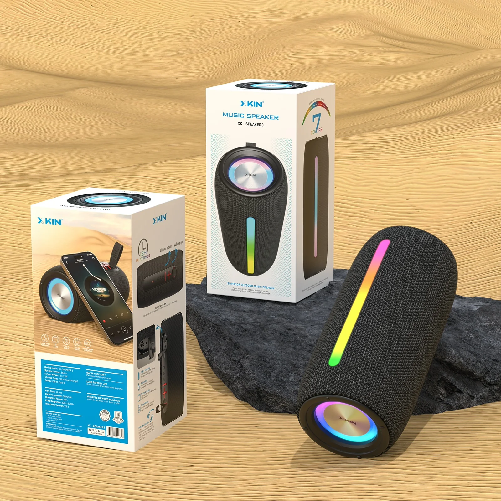 اسپیکر Xkin XK-SP3 با نور RGB، مقاومت IPX5 و دوام باتری ۱۲ ساعته، ترکیب زیبایی و عملکرد است — انتخابی عالی برای موزیک در هر جا، از خانه تا طبیعت.