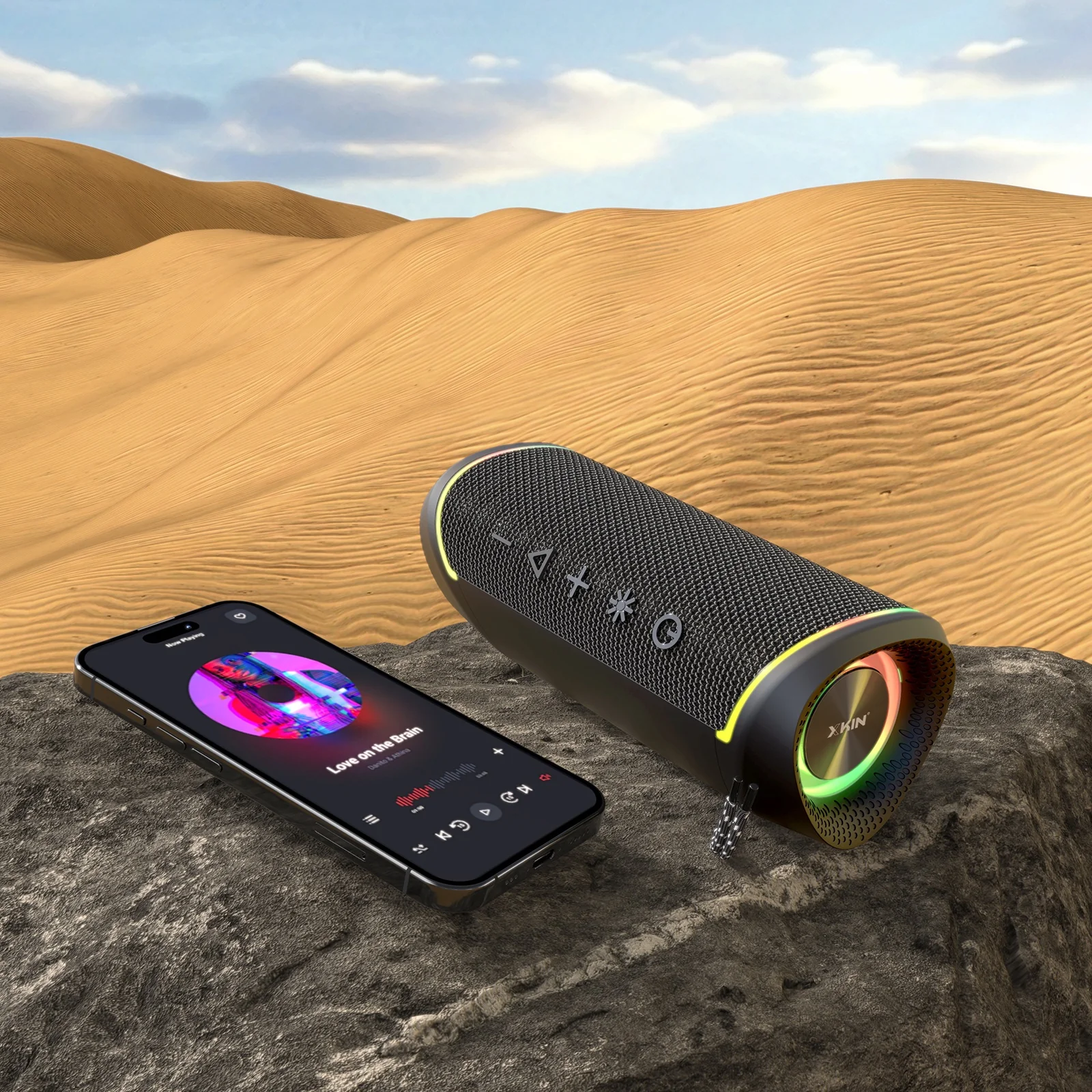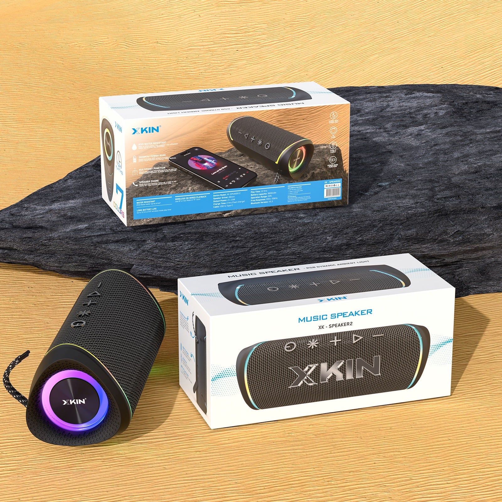 اسپیکر Xkin XK-SP2 با مقاومت IPX5، باتری ۱۲ ساعته و نورپردازی RGB، گزینهای ایدهآل برای سفر، پیکنیک یا جشن کوچک است. صدای شفاف، ظاهر جذاب و قابلحمل!