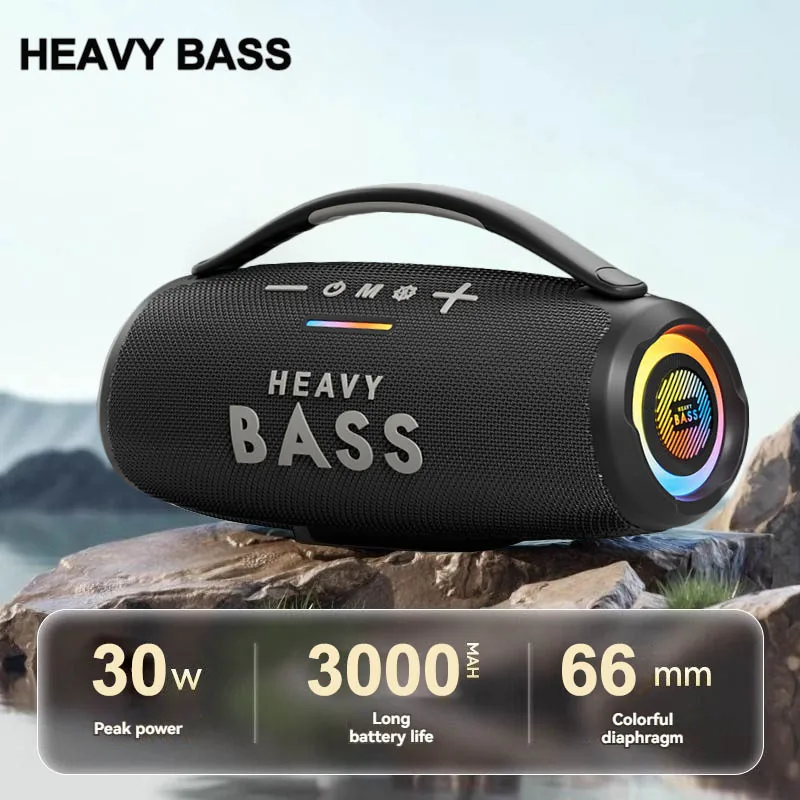 اسپیکر Heavy Bass BASS-31 با طراحی کمپکت و بدنه‌ای مقاوم، ترکیبی از قدرت و شفافیت صوتی را به ارمغان می‌آورد. با توان 30 وات و پشتیبانی از بلوتوث 5.0، صدایی پایدار و بدون قطع در برد تا 30 متر دریافت می‌کنید. باتری 3000 میلی‌آمپرساعتی آن، پخش مداوم تا 8 ساعت را ممکن می‌سازد. حالت‌های صدای متنوع مثل 3D Surround و Extra Bass، تجربه‌ای هیجان‌انگیز در هر سبک موسیقی فراهم می‌کند. گزینه‌ای عالی برای پیک‌نیک، خانه یا دورهمی های خارج از منزل.