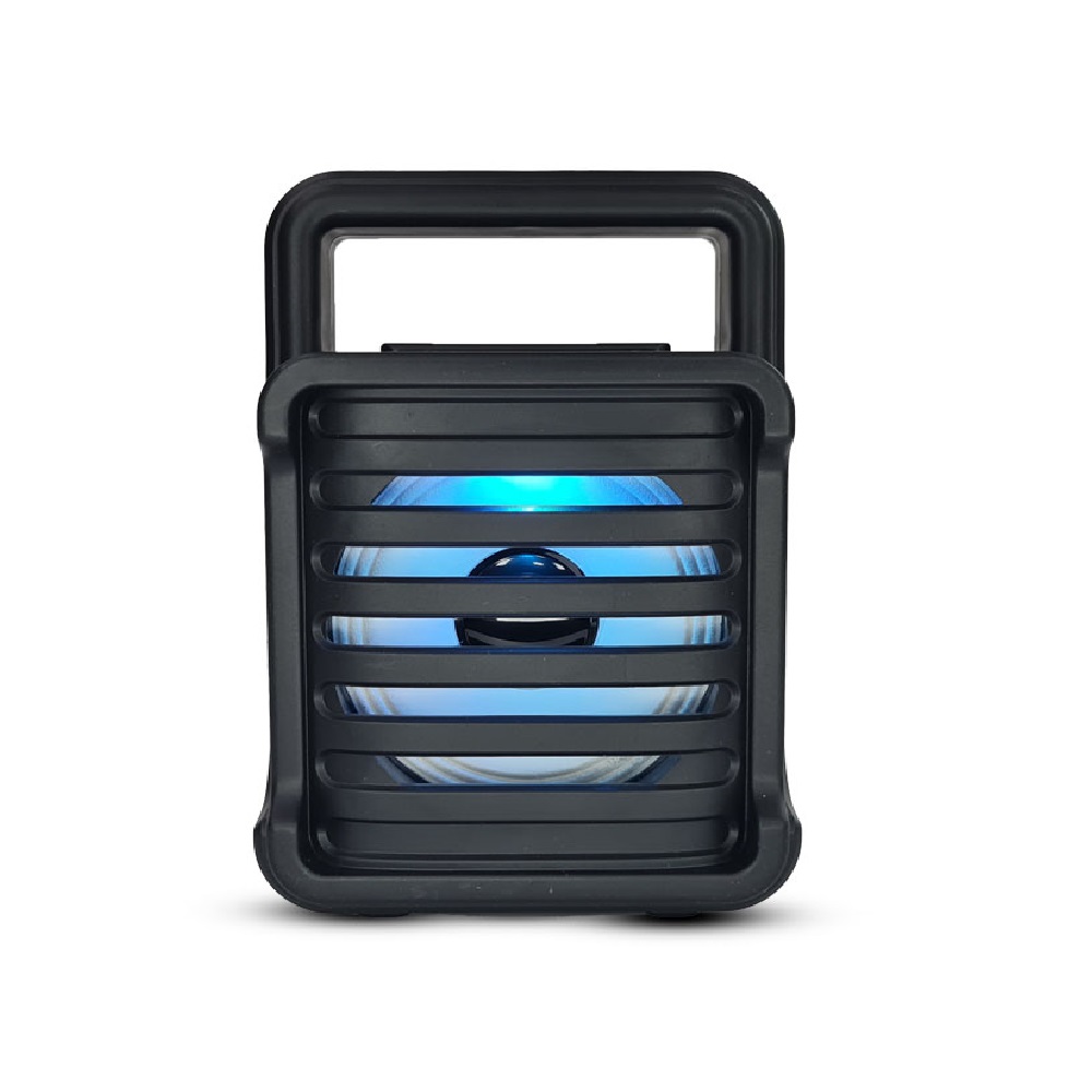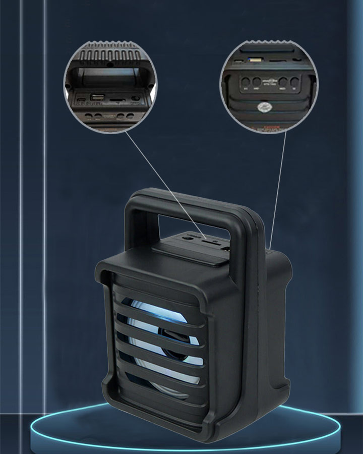 توان ۱۰ وات به همراه پاسخ فرکانسی ۱۰۰-۲۰٠٠٠ هرتز صدایی شفاف و باس مناسب ارائه میده. باتری ۱۲۰۰mAh حدود ۳ ساعت زمان پخش میدهد، نور LED اطراف دستگاه ظاهر جذابی دارد که موقع مهمانی یا فضای بیرونی حال و هوا را بهتر میکند. طراحی LED + رنگ مشکی با بدنه پلاستیکی با کیفیت، حمل و نقل را راحت میکند و مناسب کیف و سفر است. علاوه بر بلوتوث با برد حدود ۱۰ متر، پورتهای USB/SD/TF و رادیو، تنوع پخش را بالا میبرد.