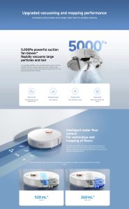 جارو رباتیک Xiaomi S40C با مکش قوی 5000 پاسکال و قابلیت تیکشی همزمان، انتخابی قدرتمند برای نظافت سطوح سخت و پارکت است. مخازن بزرگ زباله و آب اجازه میدهند تا دستگاه بتواند منطقههای بیشتری را بدون نیاز به تخلیه مکرر پوشش دهد. با وزن ~3.44 کیلوگرم و طراحی جمعوجور، حرکت بین اتاقها راحت است. سیستم لیزری LDS باعث میشود که مسیریابی دقیقتر انجام شود و نقاط کور به حداقل برسند.