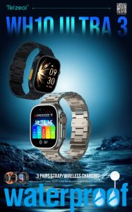 ساعت هوشمند Telzeal WH10 Ultra 3 با مقاومت آبی ۱ متر، شارژ بیسیم، مانیتور ضربان قلب و سه بند قابل تعویض؛ گزینهای قدرتمند برای کاربری روزانه و نیز فعالیت ورزشی.