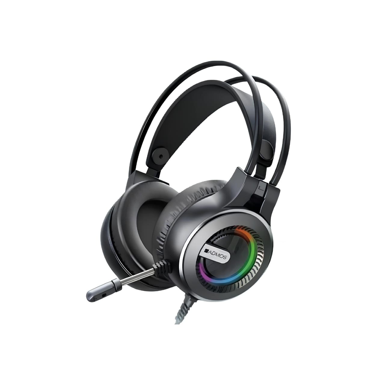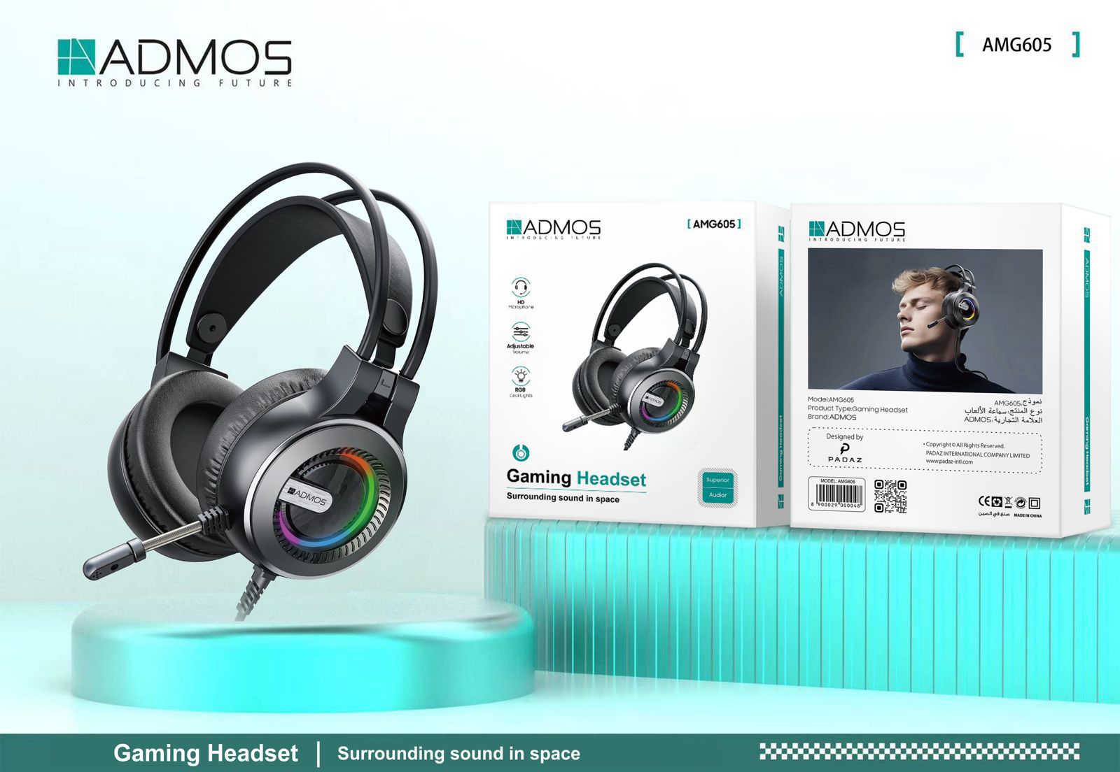 هدفون Admos AMG605 با صدای Surround، میکروفون HD، نورپردازی RGB، هدبند قابل تنظیم و اتصال سیمی 3.5mm — تجربهای قدرتمند برای گیمرها در بازیهای رقابتی.