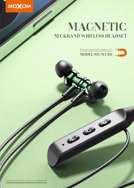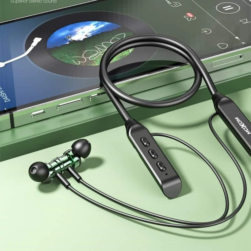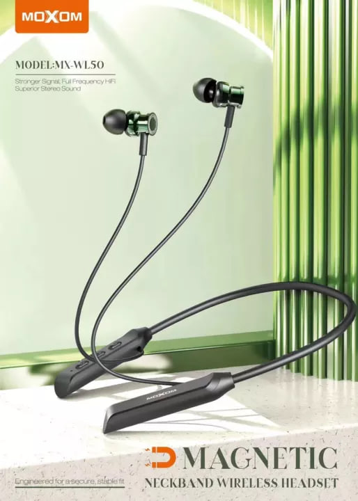 هدفون Moxom MX-WL50 با طراحی گردنبند مغناطیسی، Bluetooth 5.0، صدای باسدار، باتری 200mAh با پخش تا 15 ساعت؛ گزینهای کامل برای ورزش، سفر و استفاده روزمره.