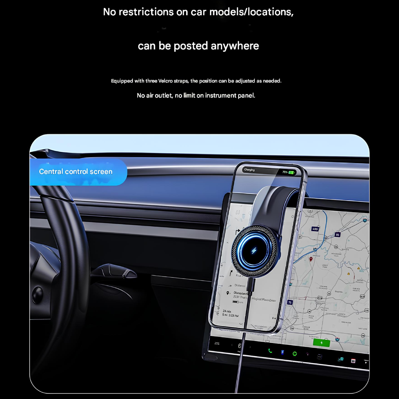 نقطه قوت اصلی این مدل، شارژ بیسیم سریع 15 وات است که هنگام مسیریابی، تماس یا پخش موسیقی، گوشی شما را بدون نیاز به کابل اضافه شارژ میکند. دیگر خبری از سیمهای شلوغ روی داشبورد نیست.