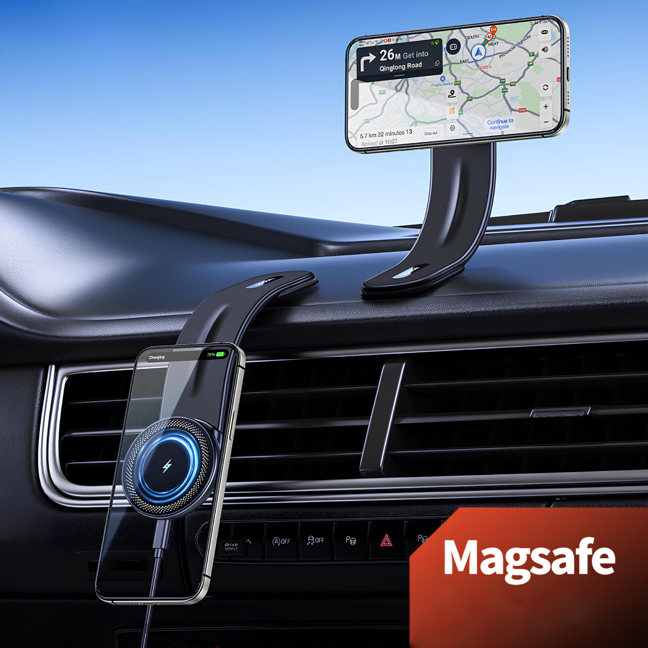 این هولدر نسل جدید 2024 با طراحی اسلیم و مینیمال ساخته شده تا کاملاً با فضای داخلی خودرو هماهنگ باشد. مگنتهای قدرتمند آن دقیقاً با حلقه MagSafe همراستا شده و گوشی را حتی در مسیرهای ناهموار و دستاندازها کاملاً ثابت نگه میدارند.