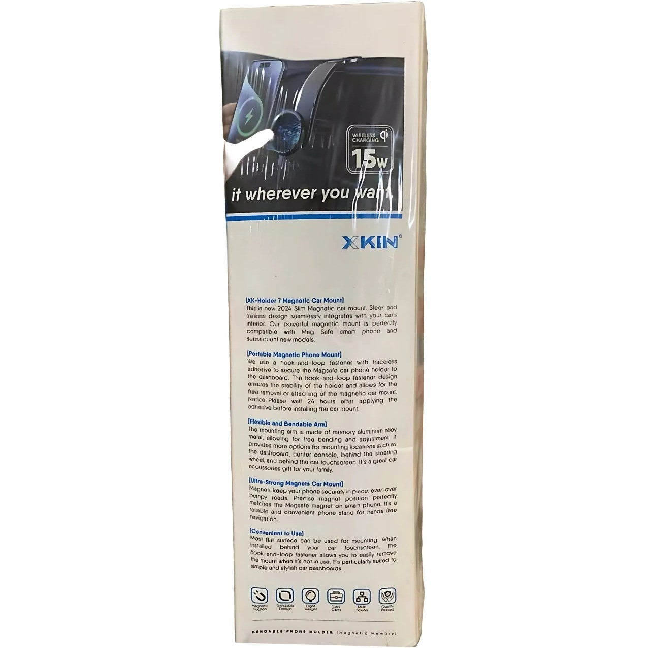 هولدر و شارژر وایرلس خودرو XKIN XK-Holder 7 با توان 15 وات، مگنت قوی و بازوی انعطافپذیر، انتخابی حرفهای برای نگهداری ایمن و شارژ سریع گوشی در خودرو است.
