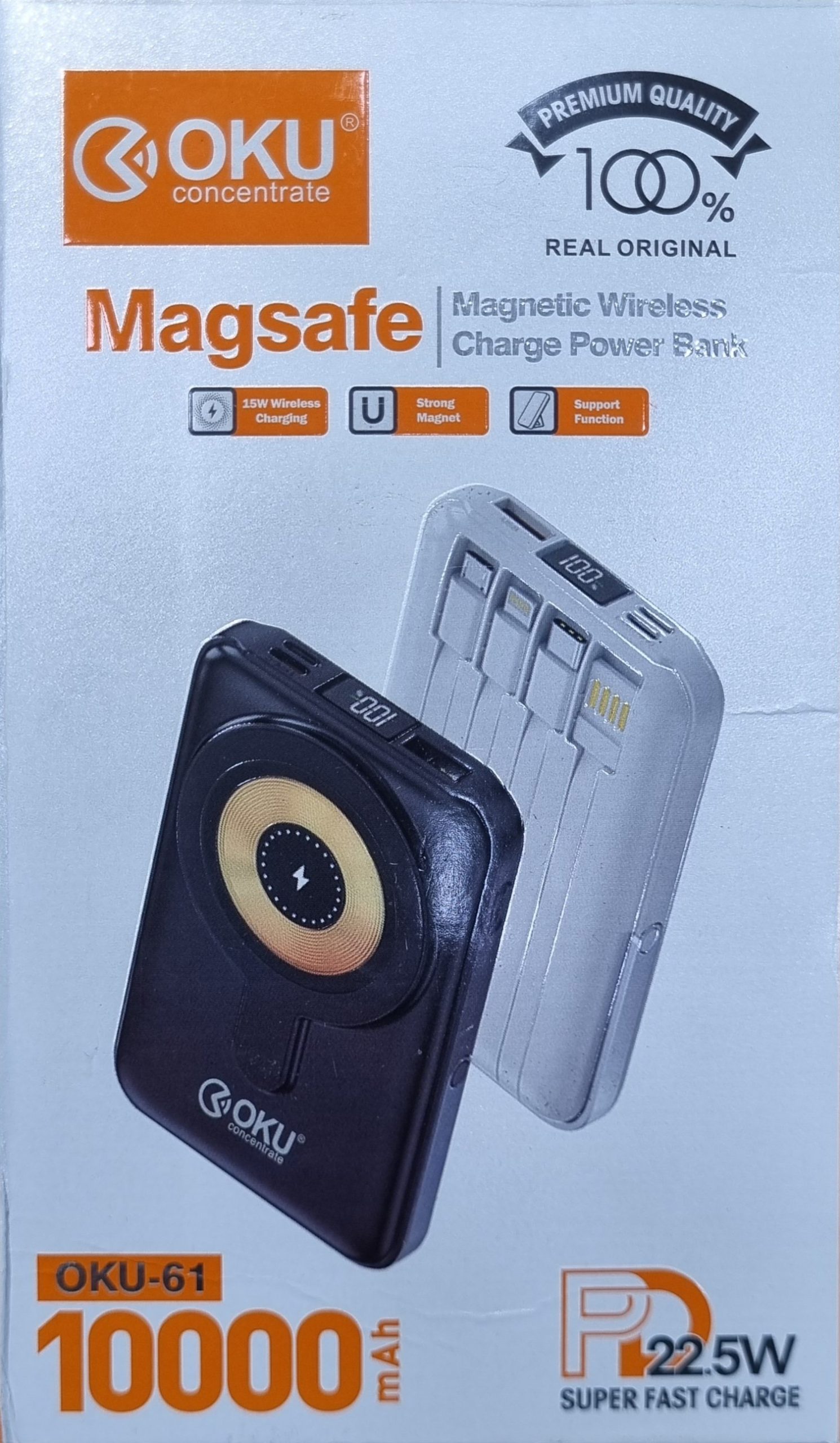 پاوربانک OKU-61 با ظرفیت ۱۰٬۰۰۰mAh، شارژ سریع PD 22.5W، شارژ بیسیم ۱۵ وات و پایه داخلی؛ همراهی سبک و هوشمند برای گوشیهای اندروید و آیفون با قابلیت MagSafe