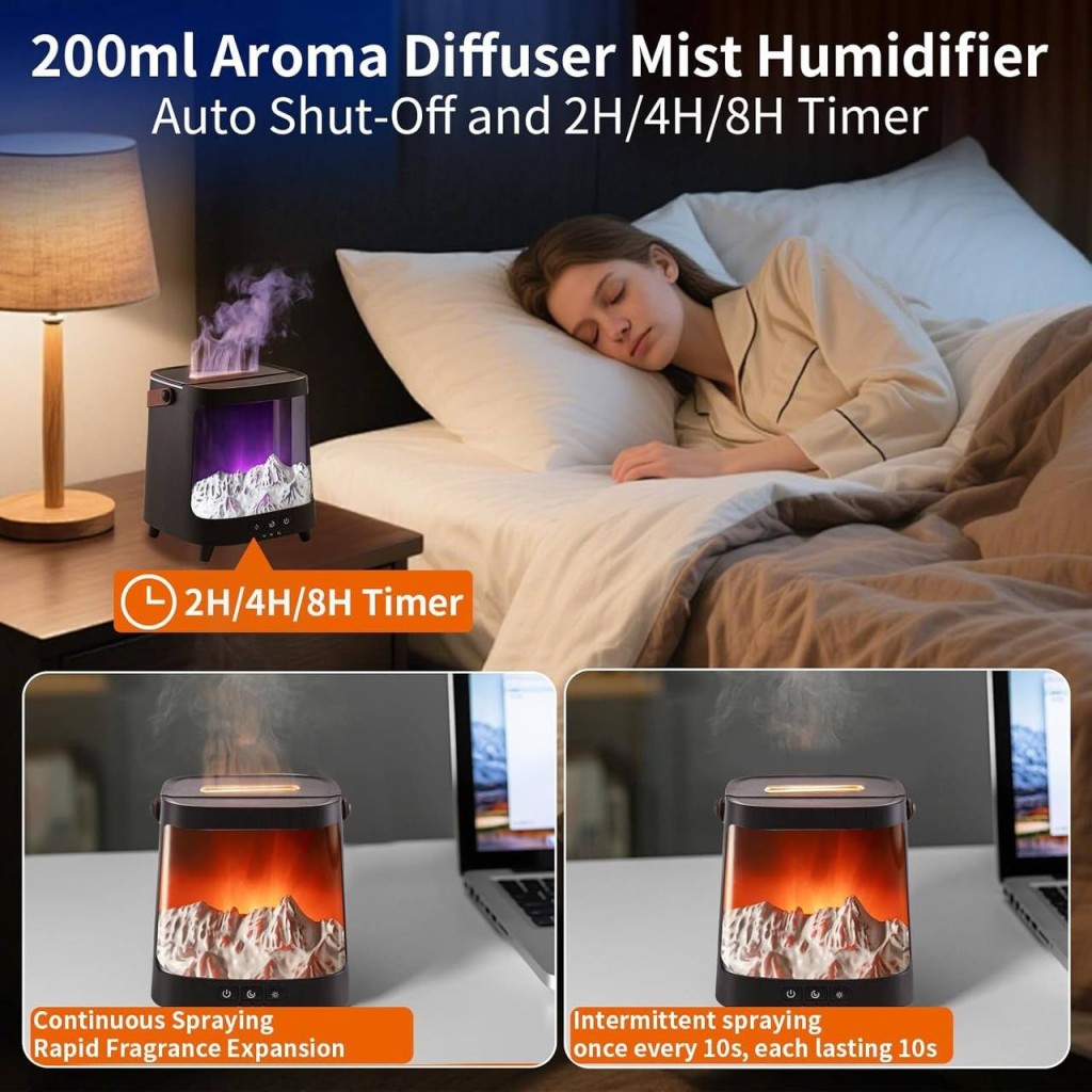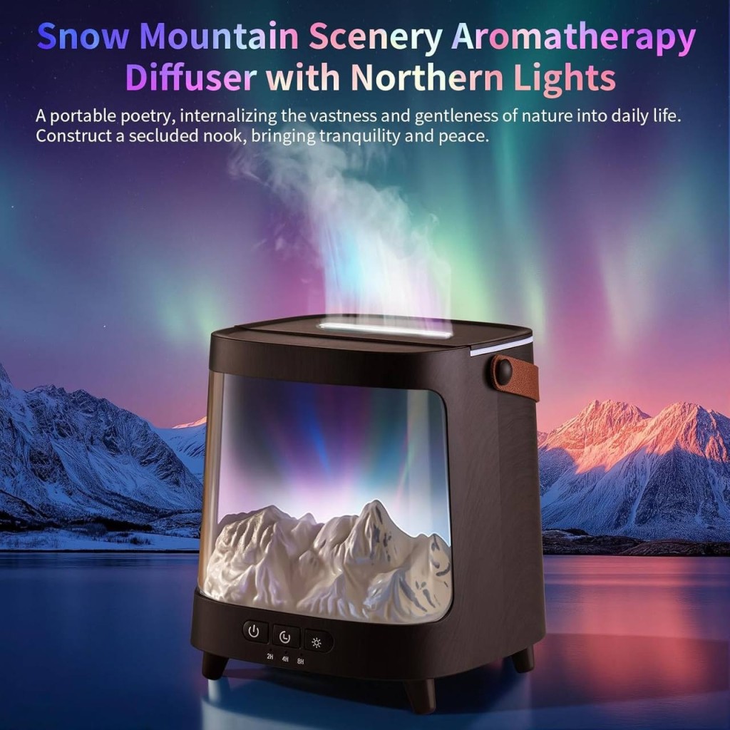 بخور سرد و چراغ خواب طرح کوه و شفق قطبی مدل D631 با طراحی خاص، نورپردازی آرامشبخش و عملکرد بیصدا، گزینهای ایدهآل برای بهبود کیفیت هوا و زیباسازی فضای منزل است.